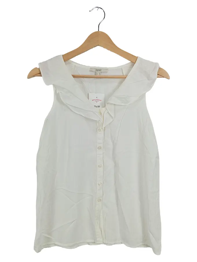 Damen Bluse ärmellos Weiß Rüschenkragen Gr. 34 XS Viskose