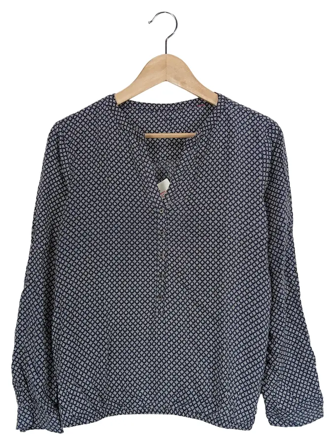Damen Bluse Blau Grafisch Einheitsgröße Casual Langarm