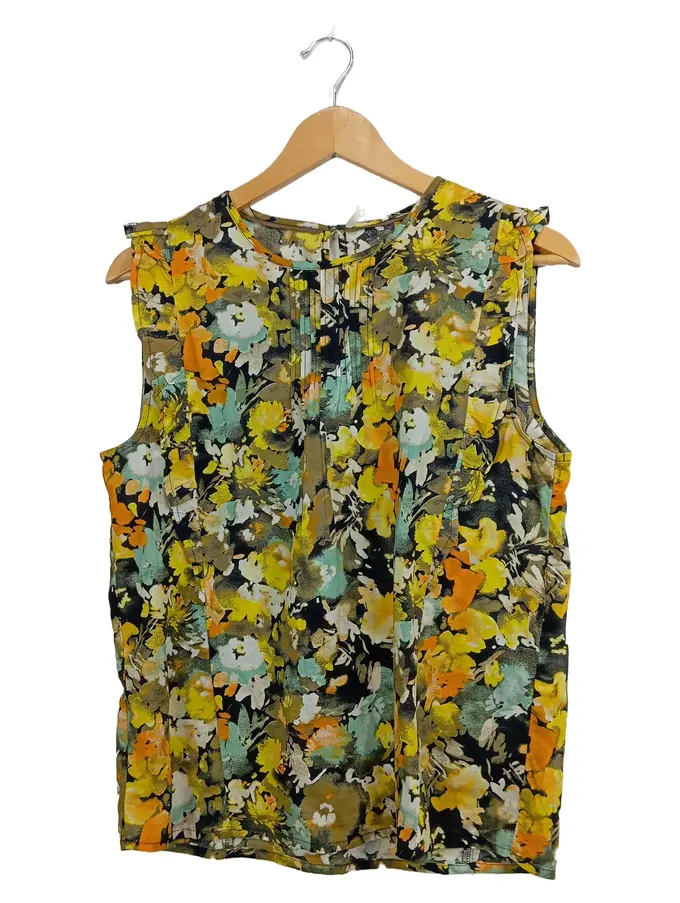 Damen Bluse Blumenmuster Gr. 36 Mehrfarbig Casual Ärmellos