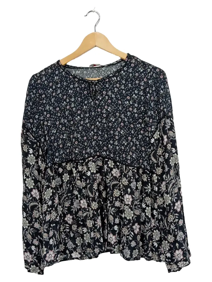 Damen Bluse Blumenmuster Langarm Gr. 38