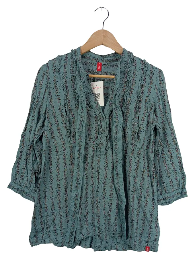 Damen Bluse Blumenmuster Rüschen Petrol Gr. M/38