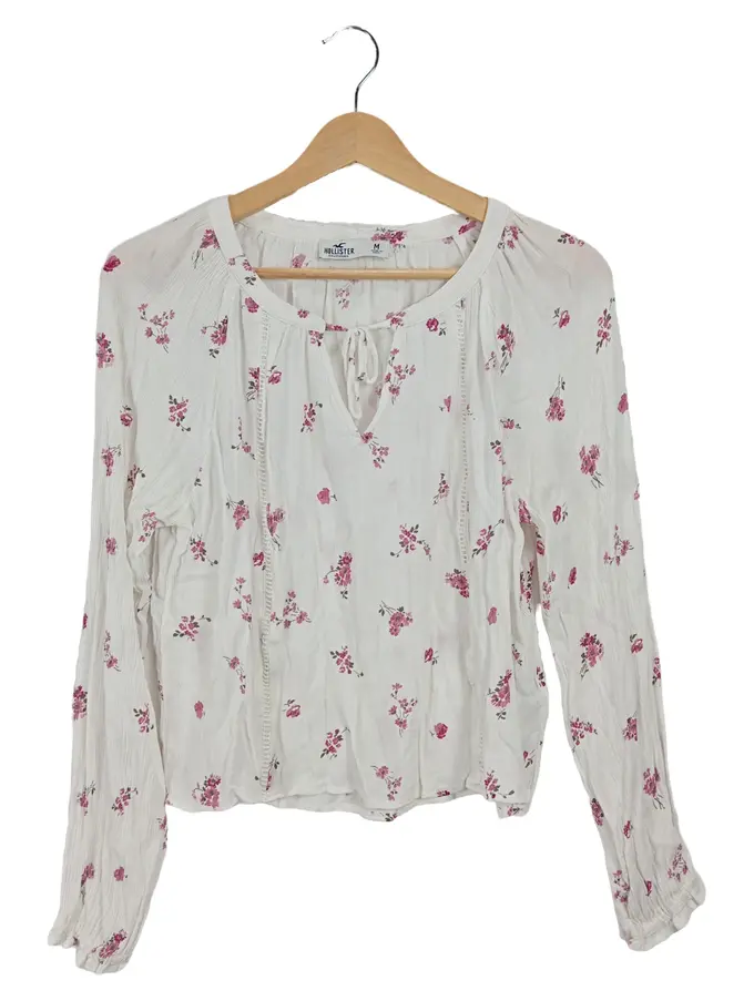 Damen Bluse Blumenmuster Weiß Rosa Gr. M Langarm Boho