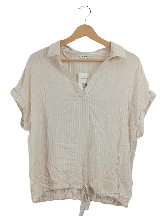 Damen Bluse gestreift Beige Gr. 38 V-Ausschnitt Kurzarm Casual
