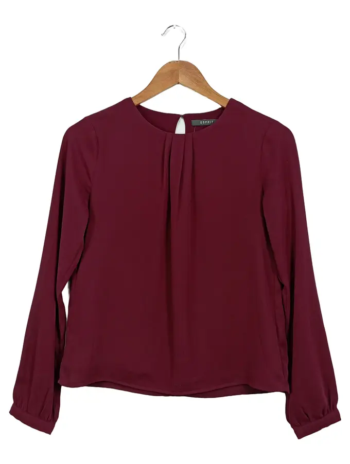 Damen Bluse Gr. 32/XXS Rot Elegant Langarm Polyester