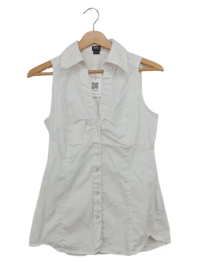 Damen Bluse Gr. 32/XXS Weiß Casual Ärmellos Sommer Top