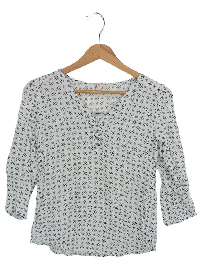 Damen Bluse Gr. 32/XXS Weiß Casual Viskose Grafisches Muster 3/4-Arm