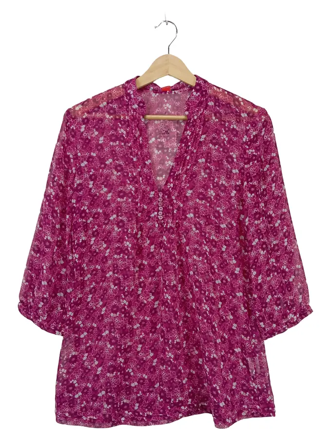 Damen Bluse Gr. 34 Pink Blumenmuster Transparent 3/4-Arm