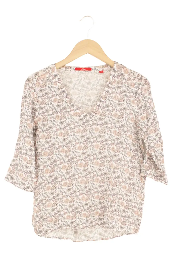 Damen Bluse Gr. 34/XS Beige Florales Muster Viskose