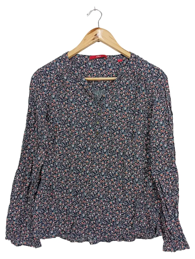 Damen Bluse Gr. 34/XS Blau Blumenmuster Casual Langarm Viskose