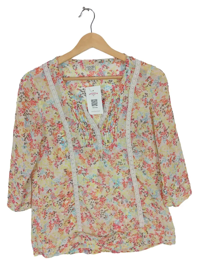 Damen Bluse Gr. 34/XS Blumenmuster Spitze Mehrfarbig