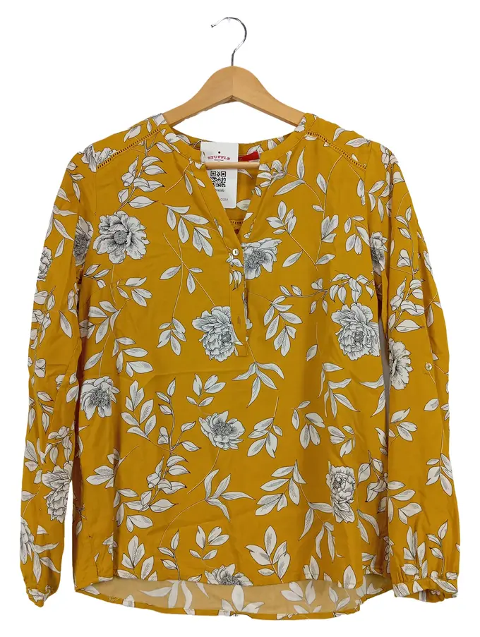 Damen Bluse Gr. 34/XS Gelb Blumenmuster Viskose Langarm