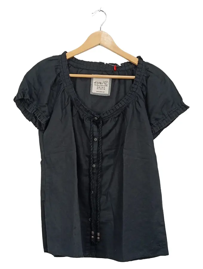 Damen Bluse Gr. 34/XS Schwarz Leinen Baumwolle Rüschen
