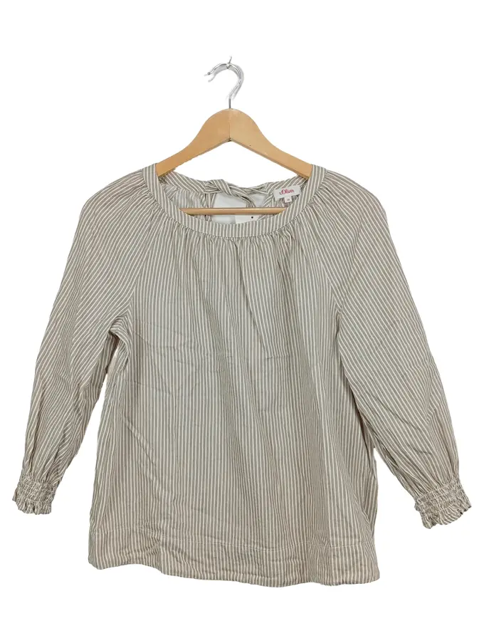 Damen Bluse Gr. 36 Beige Gestreift Baumwolle Langarm Casual