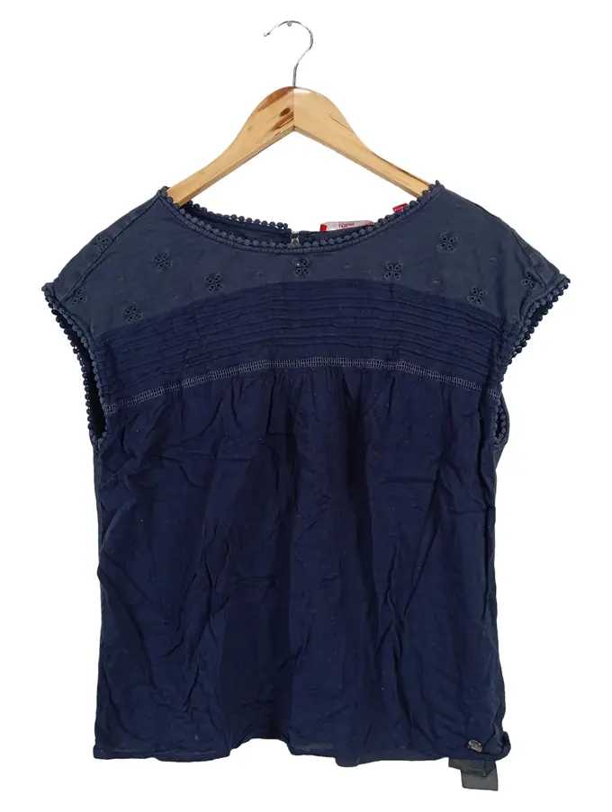 Damen Bluse Gr. 36 Blau Casual Lochmuster Baumwolle
