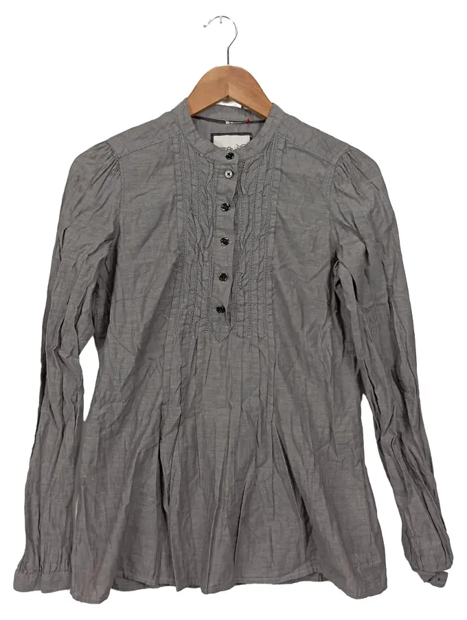 Damen Bluse Gr. 36 Grau Casual Langarm Baumwolle