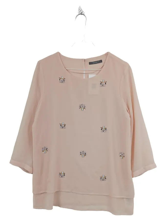 Damen Bluse Gr. 36 Rosa Strass Applikationen Elegant