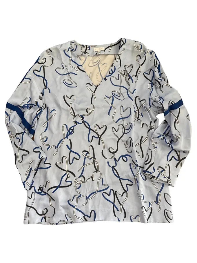 Damen Bluse Gr. 36;S Blau Elegant Seide