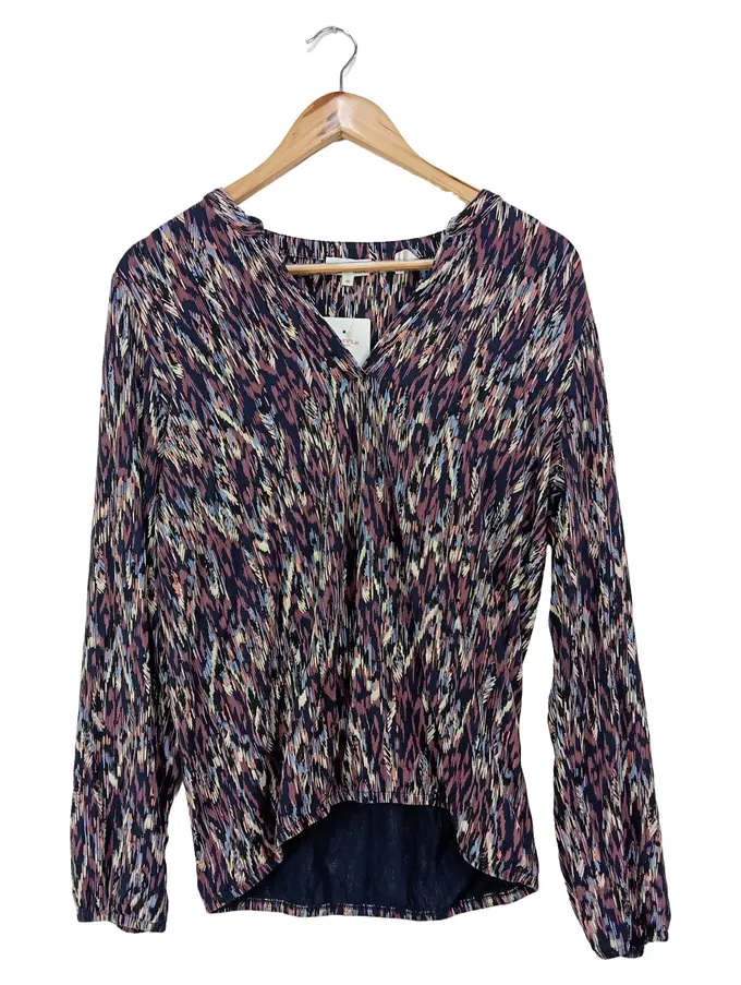 Damen Bluse Gr. 36/S Blau Grafisch Muster Viskose Casual
