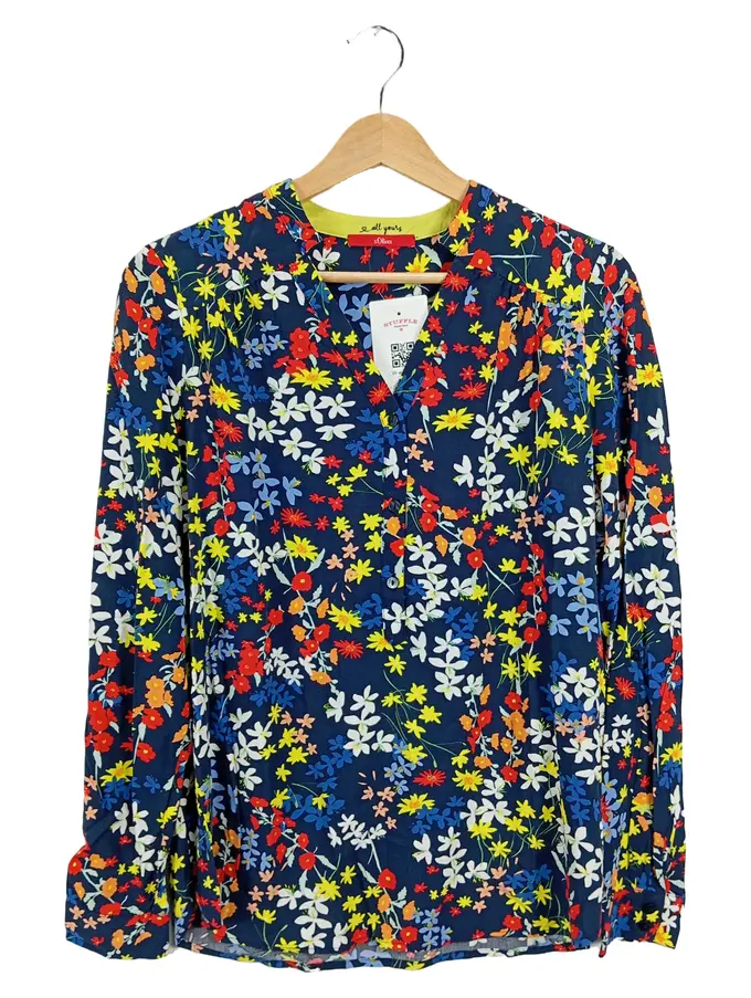 Damen Bluse Gr. 36/S Blumenmuster Viskose Langarm Blau