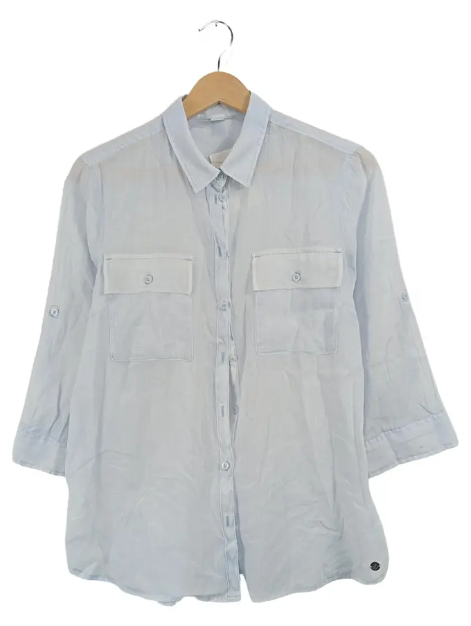 Damen Bluse Gr. 36 S Hellblau Leinen 3/4-Arm Casual