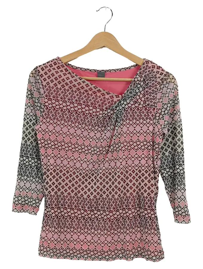 Damen Bluse Gr. 36 S Mehrfarbig Geometrisch Muster 3/4-Arm