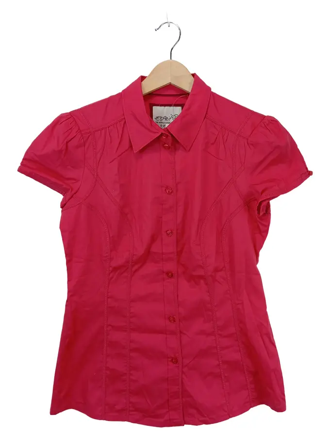 Damen Bluse Gr. 36/S Pink Kurzarm Knopfleiste Baumwolle