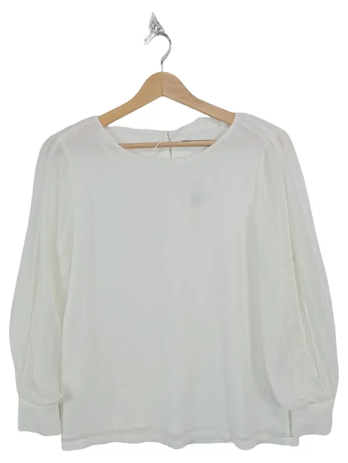 Damen Bluse Gr. 36/S Weiß Spitzenärmel Elegant Langarm