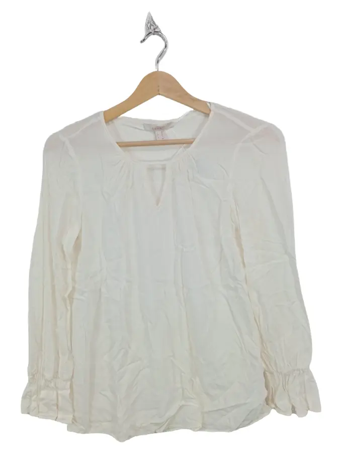 Damen Bluse Gr. 36 Weiß Viskose Langarm Tunika Feminin