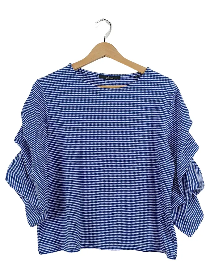 Damen Bluse Gr. 38 Blau Gestreift Rüschen Ärmel Feminin