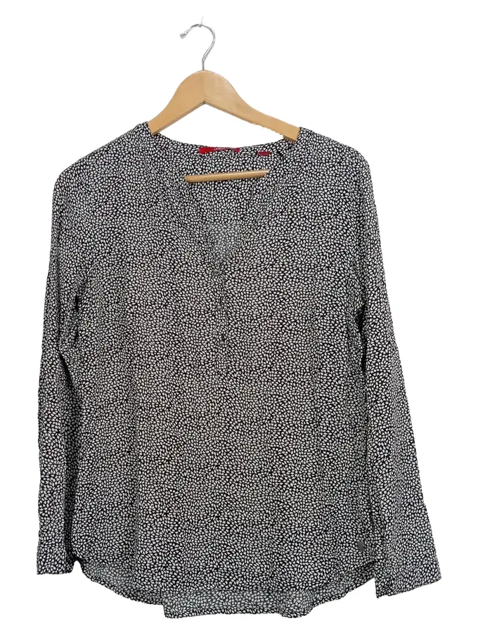 Damen Bluse Gr. 38 Langarm Schwarz Grafisch Casual