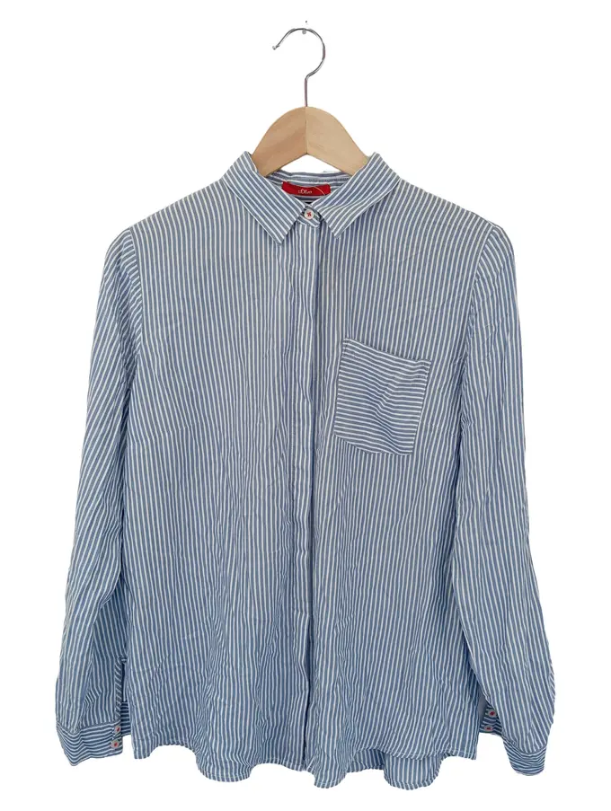 Damen Bluse Gr. 38/M Blau Gestreift Casual Langarm Viskose