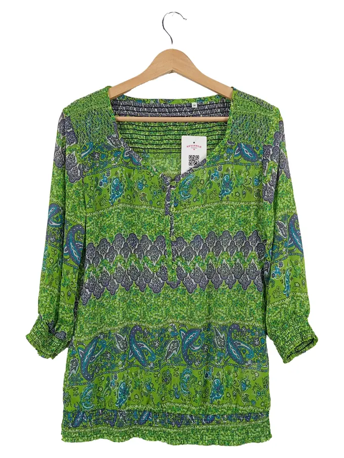 Damen Bluse Gr. 38/M Grün Paisley Boho 3/4-Arm