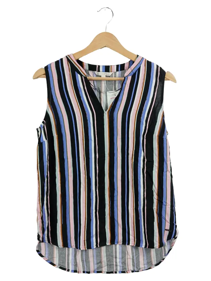 Damen Bluse Gr. 38 M Mehrfarbig Gestreift Ärmellos Viskose