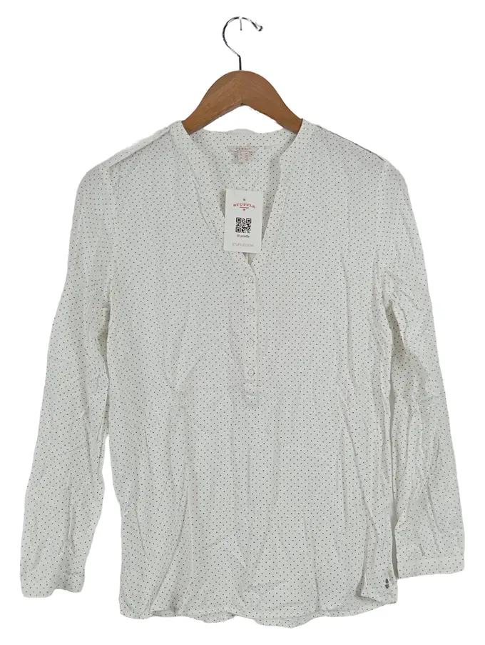 Damen Bluse Gr. 38 M Weiß Punkte Casual 3/4-Arm