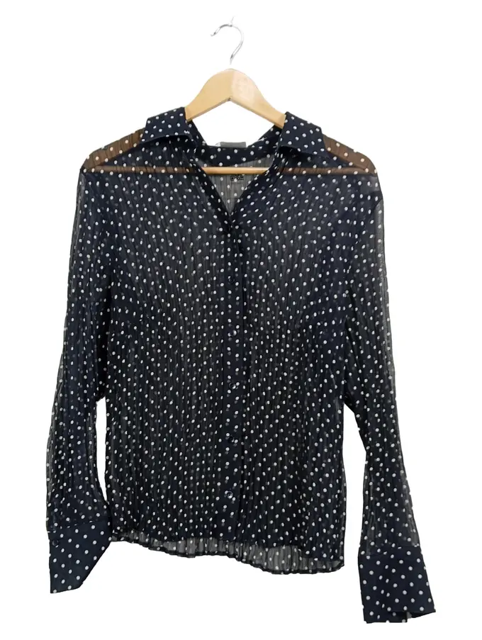 Damen Bluse Gr. 38 Schwarz Polka Dots Transparent Elegant
