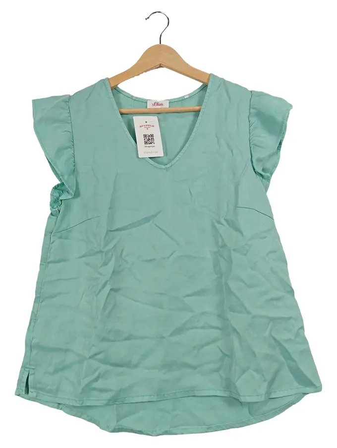 Damen Bluse Gr. 38 Türkis Casual Rüschen Lyocell