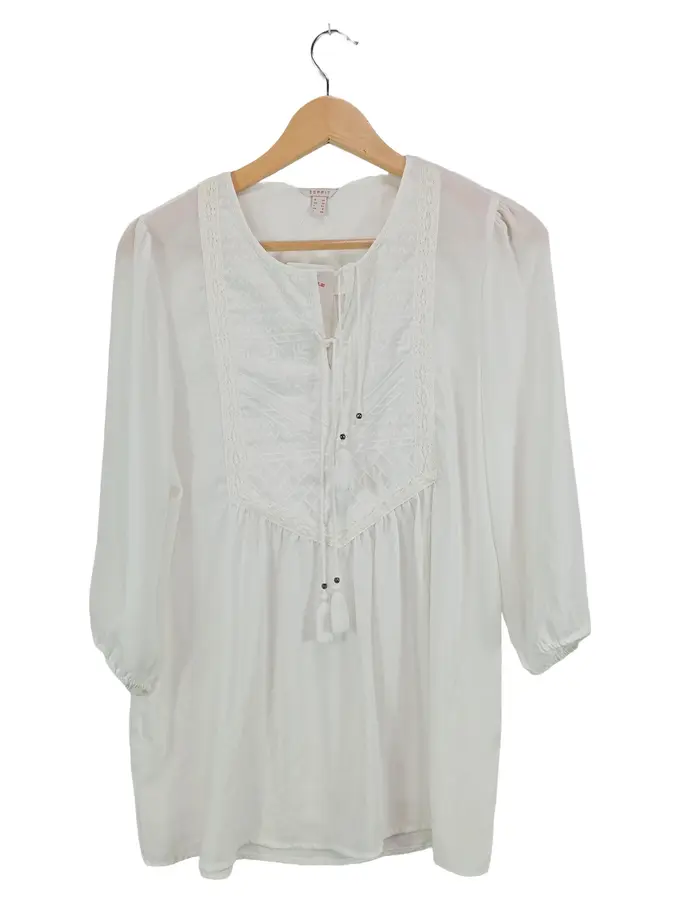 Damen Bluse Gr. 38 Weiß Bohemian Stickerei Spitze 3/4-Arm