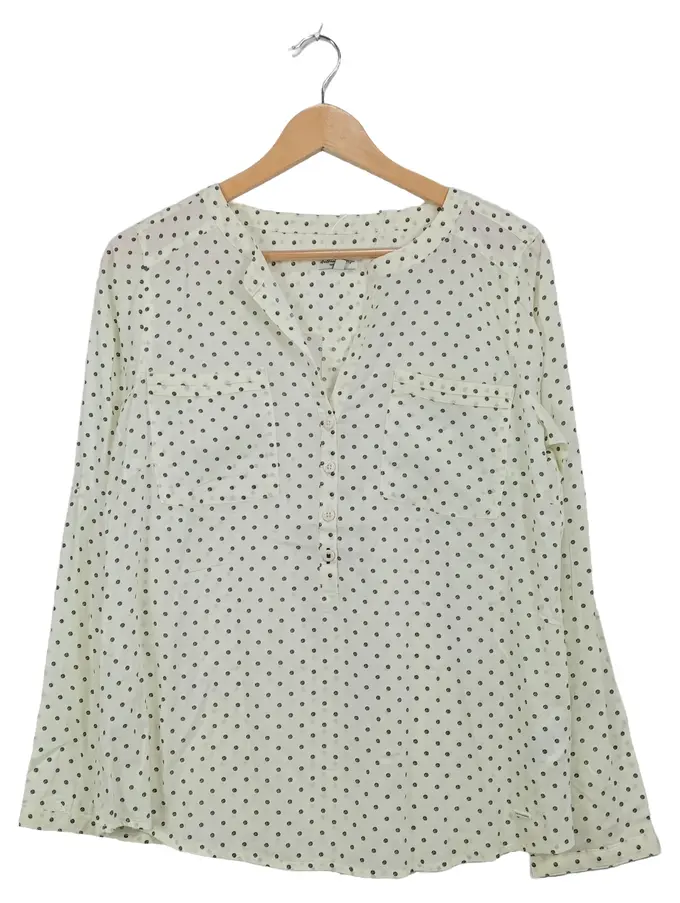 Damen Bluse Gr. 38 Weiß Polka Dots Langarm Casual