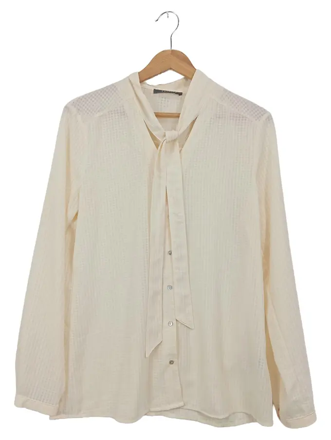 Damen Bluse Gr. 40 Beige Schleifenbluse Business Klassisch Langarm