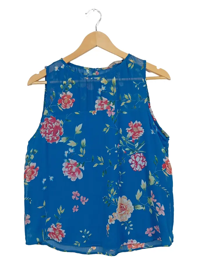 Damen Bluse Gr. 40 L Blau Blumenmuster Ärmellos Sommer Shirt
