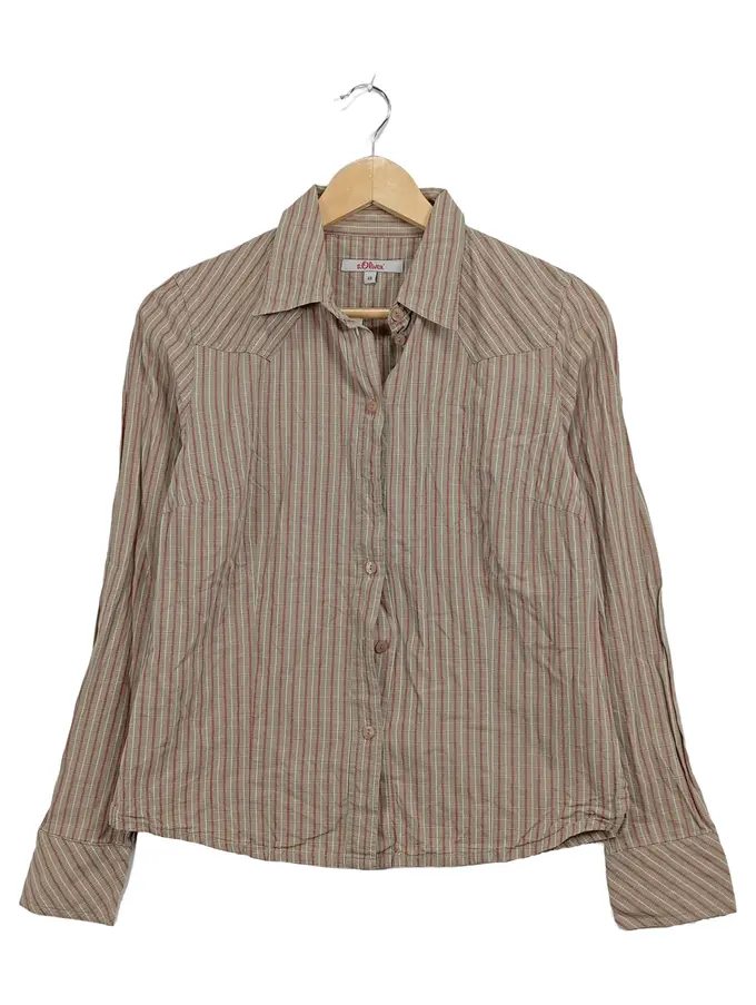 Damen Bluse Gr. 40 L kariert beige rot Langarm Baumwolle