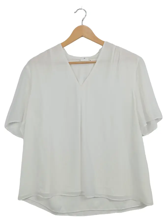 Damen Bluse Gr. 40/L Weiß Elegant V-Ausschnitt Kurzarm