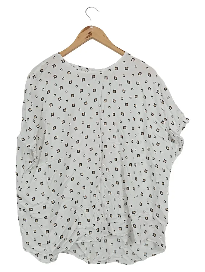 Damen Bluse Gr. 40/L Weiß Grafisch Viskose Modern