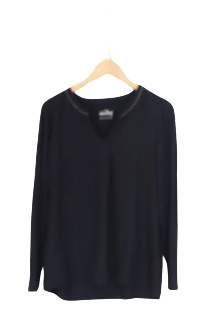 Damen Bluse Gr. 40/M Schwarz Elegant Business Langarm Viskose