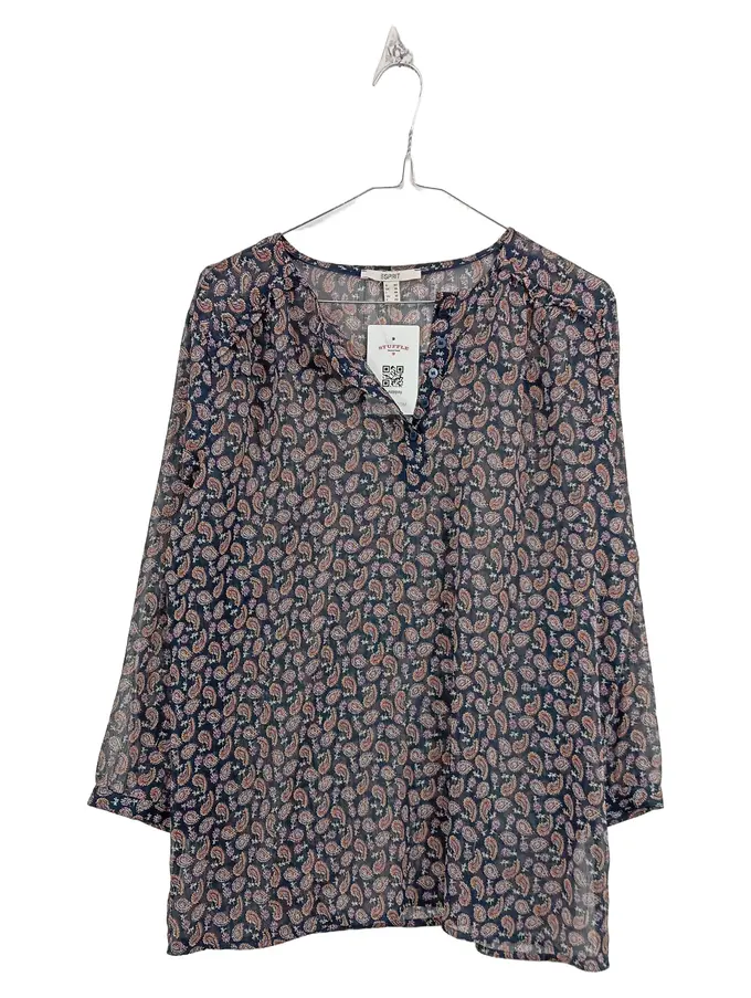 Damen Bluse Gr. 40 Paisley-Muster Blau Langarm Boho