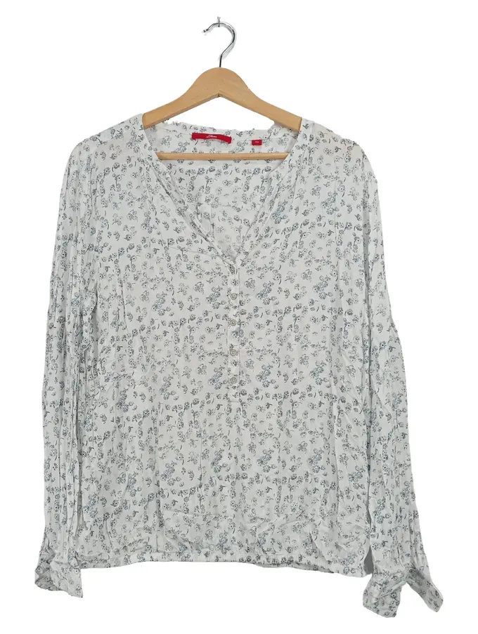 Damen Bluse Gr. 40 Weiß Blumenmuster Langarm Casual