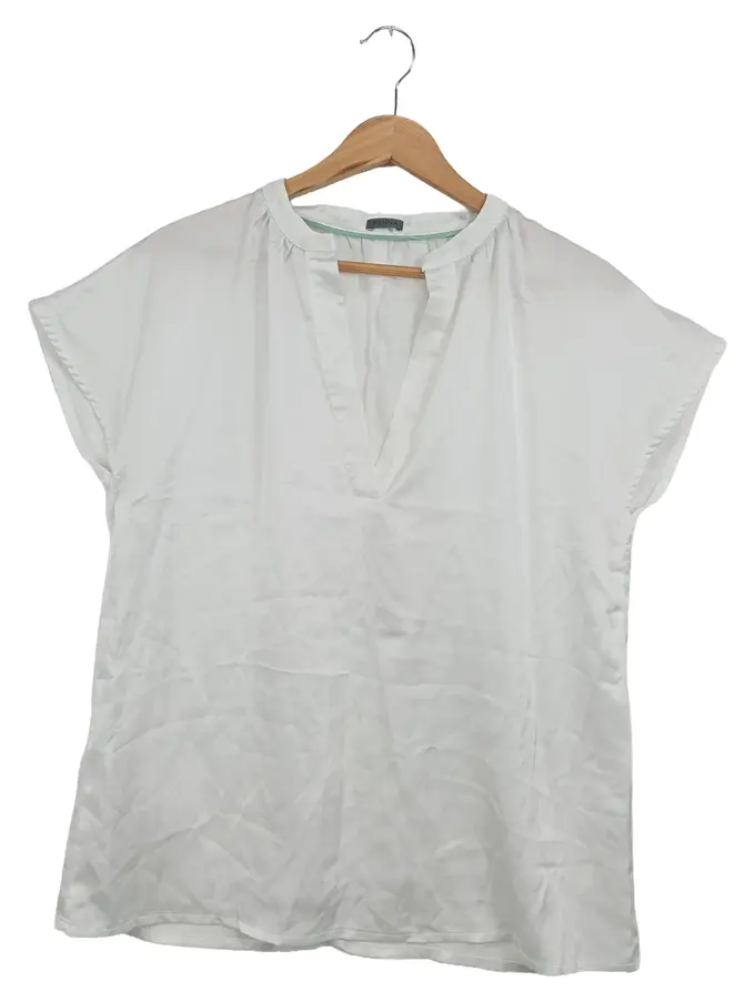 Damen Bluse Gr. 40 Weiß Elegant Kurzarm Polyester Elasthan
