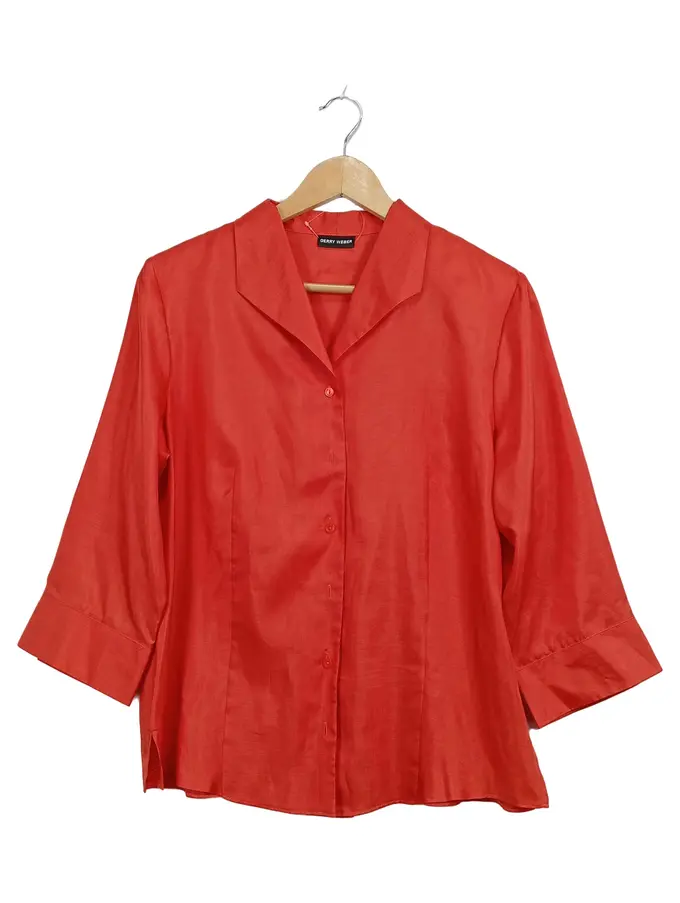 Damen Bluse Gr. 42 Rot 3/4-Arm Klassisch Elegant