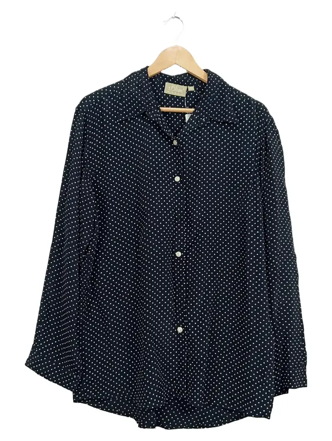 Damen Bluse Gr. 42 Schwarz Gepunktet Langarm Viskose
