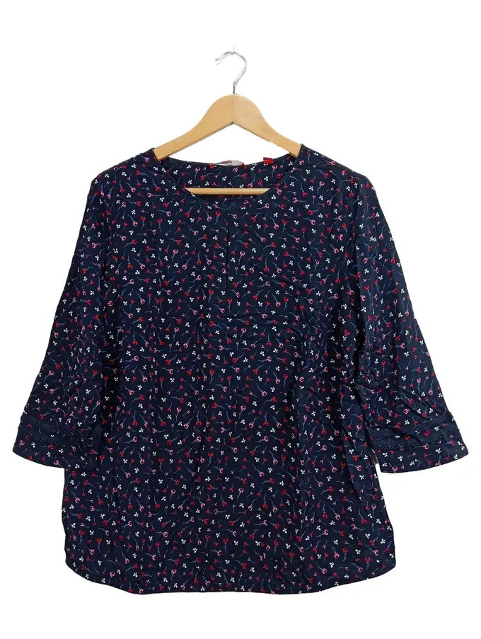 Damen Bluse Gr. 44 Blau Blumenmuster 3/4-Arm Viskose